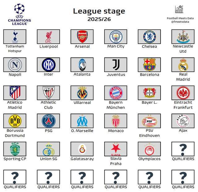 至此,2025-26赛季欧冠36强的29个直通名额(此外还有7个名额,通过资格赛产生),已经全部诞生!